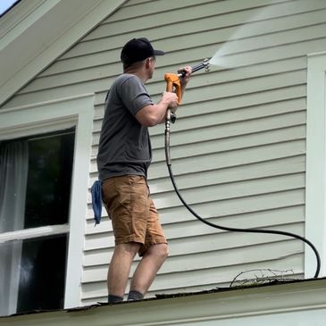 Soft washing has no pressure and relies on a special mix of products and a far reaching spray to dispose of organisms, dirt, and other debris.